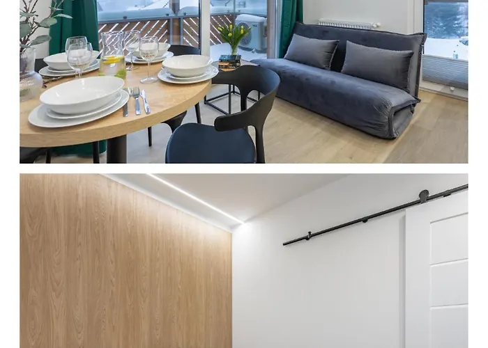 Diese Apartments bietet einen Wohnbereich und einen Balkon und Annehmlichkeiten wie eine Klimaanlage. Das Z Widokiem Apartamenty Swierkowe 8 - Z Widokiem Na Gory, Blisko Stoku Narciarskiego Dolina Szczescia verfügt über 1 Badezimmer. Badelaken sind ebenfalls vorhanden.